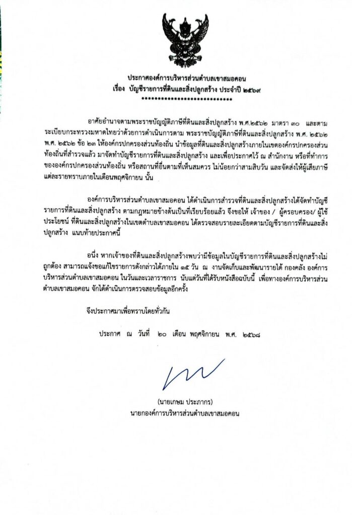 - ประกาศองค์การบริหารส่วนตำบลเขาสมอคอน เรื่อง ประกาศสำเนารายงานการเงิน ประจำปีงบประมาณ 2568