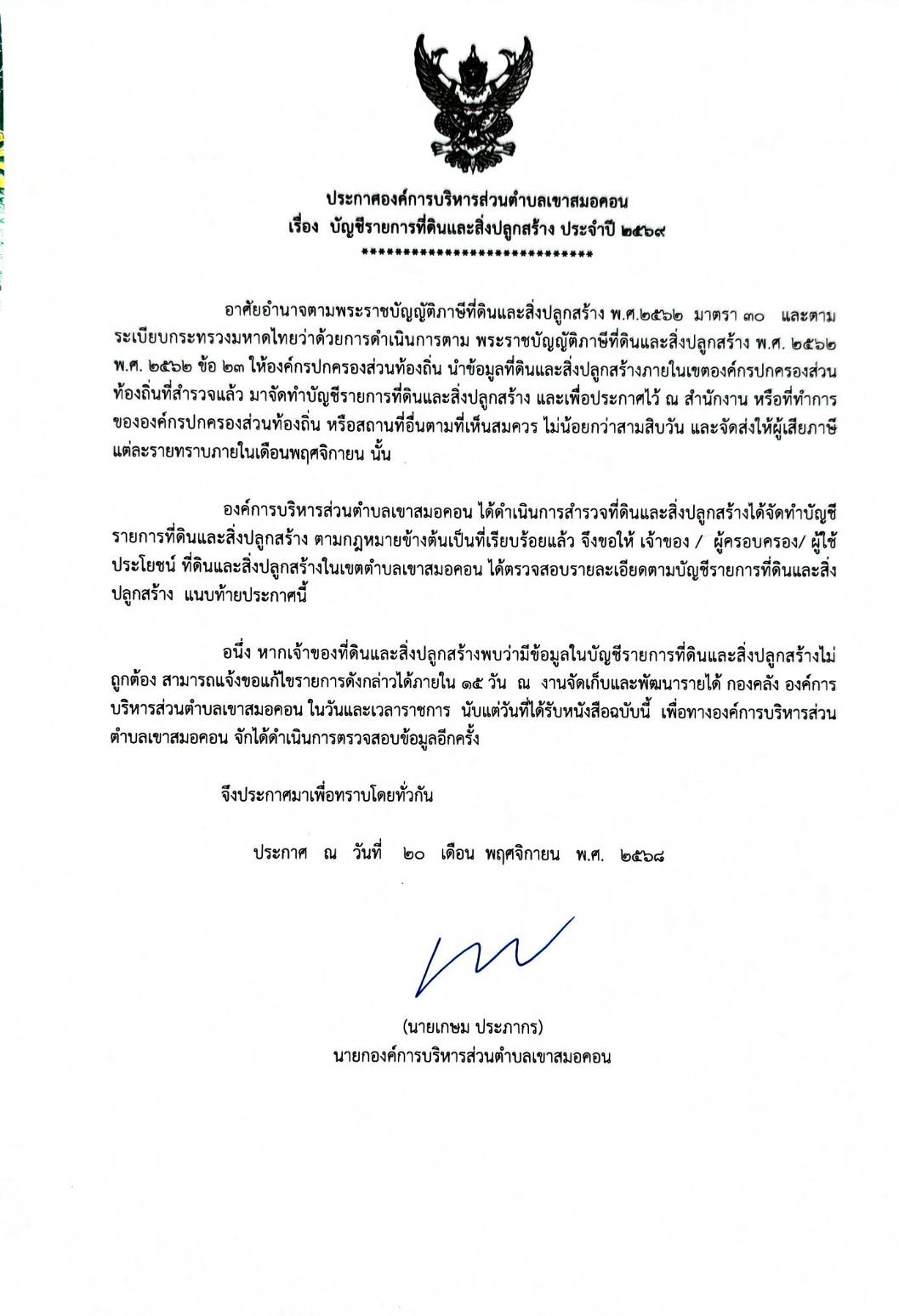 แบบบัญชีรายการที่ดินและสิ่งปลูกสร้างอบต.เขาสมอคอน อำเภอท่าวุ้ง จังหวัดลพบุรี